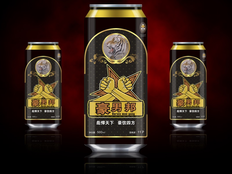 创立双剑公司的时候我就意识到,全球营销中有一个严重的误区,就是品牌名称完全不能彰显品牌的身份以及使用者的身份。譬如青岛啤酒和雪花啤酒,一个是地名一个是自然物名,它们根本与喝酒的消费者无关,更无法彰显啤酒消费者的身份;而我的“豪男邦——血性男人的豪酒”,就完全彰显出啤酒消费者的性格身份(如图5-1所示)。