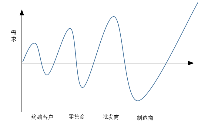 而牛鞭效应示意图则可以如下: