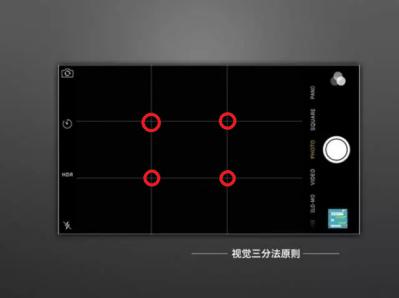 从构图的角度来说,把拍照主体放在九宫格横向和纵向相交叉的四个红点上,最能吸引人的注意力,这就是构图的三分法原则,如图2-27所示。
