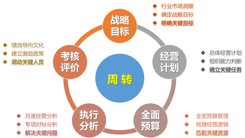 通过对国内外标杆企业经营发展的总结,我们建立了一个“从战略到执行”的框架,分别是:战略规划、经营计划、全面预算、‍‍执行分析、考核评价(见图3-1)。