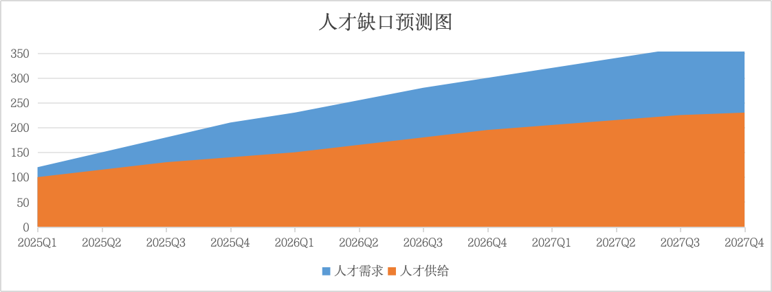 ​ 蓝色区域显示了两者之间的缺口,即人才紧缺趋势。
