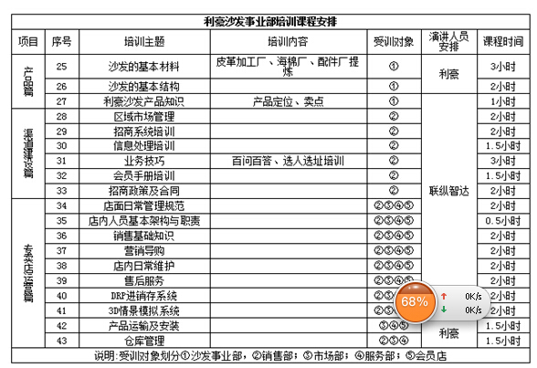表4-3 利豪沙发事业部培训课程安排