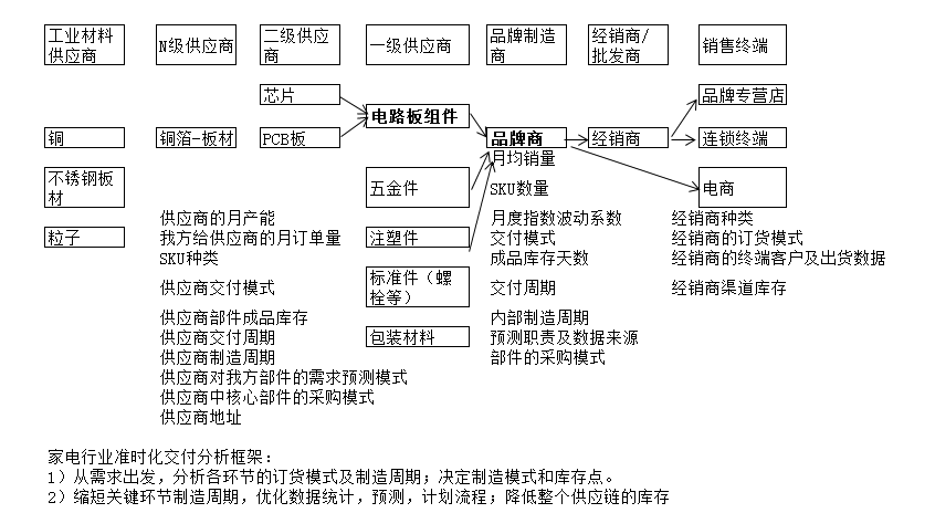 家电行业一般分为白电(冰洗空等);黑电(彩电、音响);厨房电器(烟机、灶具);生活电器(电吹风、饮水机、豆浆机等)。在这四个子行业中,彩电行业现在更类似于消费电子行业,芯片交付是计划的核心问题,计划与物流模式与其他三个子行业产业很大,本文主要针对白电,厨电和生活电器的计划与物流改善进行阐述。