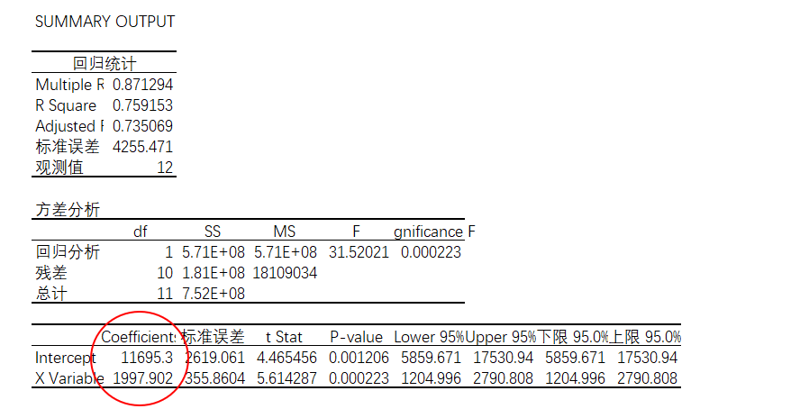 另外也可以选择Excel中的数据-数据分析-回归,得出相关的数值。