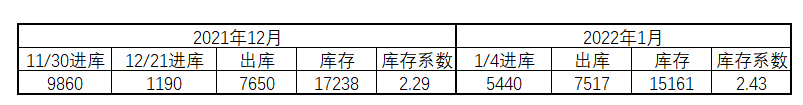 二月库存系数= 二月库存/(一月库存 +二月进库 – 二月出库)