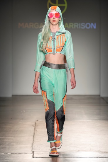 柔软与坚硬性:柔软与坚硬不一定需要通过面料的质感来表现,利用色彩也可以表现出这些性质。明度高且纯度低的色彩给人柔软柔和的感觉,低明度、低纯度色彩则表现出坚硬感。如图8-31、图8-32所示,同样材质的服装,暖色调给人柔和、柔软的感觉,而冷色调的蓝绿比较之下增加了几分坚硬感。