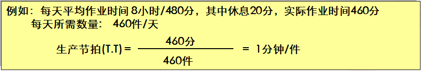 节拍时间的定义是依据客户需求每生产一个零件的生产节奏。