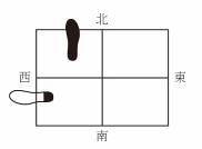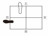 2.上半身不动,右脚踩下去,左脚拉开与肩同宽,脚跟点地。