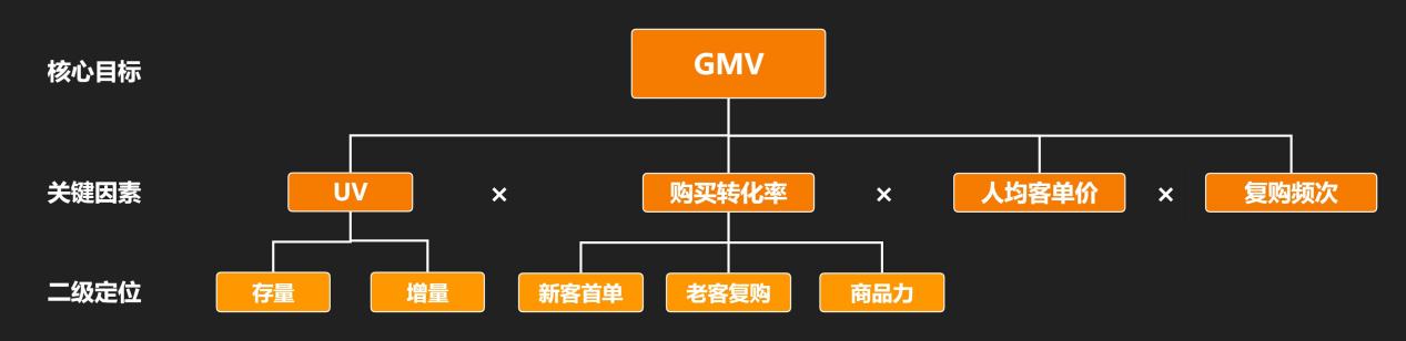 假设社群运营的目标是产品销售 GMV,那么这时候我们只需要去看,想要提升GMV,关键需要抓住哪些因素?