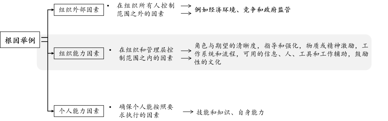 识别差距的下一步是对差距进行排序以定位核心差距,进行排序的原因有两个:一是企业资源有限,必须优先解决核心差距;二是通过差距分析,识别当前公司的关键性障碍是什么?在差距识别、排序之后,需要再对差距进行正确的归因,找出差距与原因真正的“因果关系”,是个因素还是组织因素,这是差距分析的关键和难点(如图2-6所示)。根因分析(5Why)何时可以停止:1.能不能阻止问题再次发生; 2.能不能归因到自己?3.能不能制定出行动?