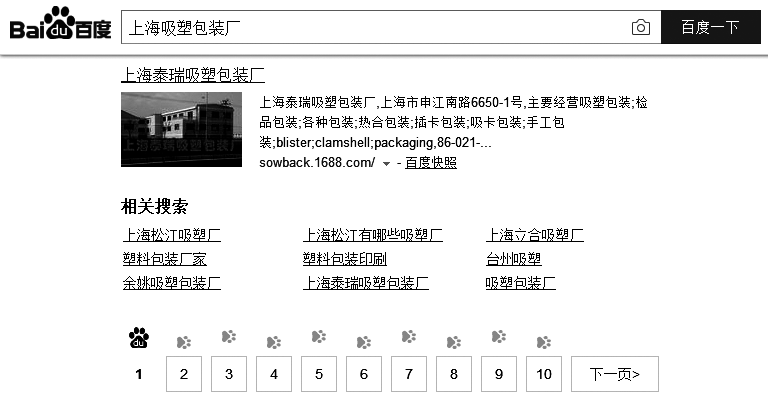 图4-2 在百度搜索“上海吸塑包装厂”,搜索结果底部的相关搜索展现结果
