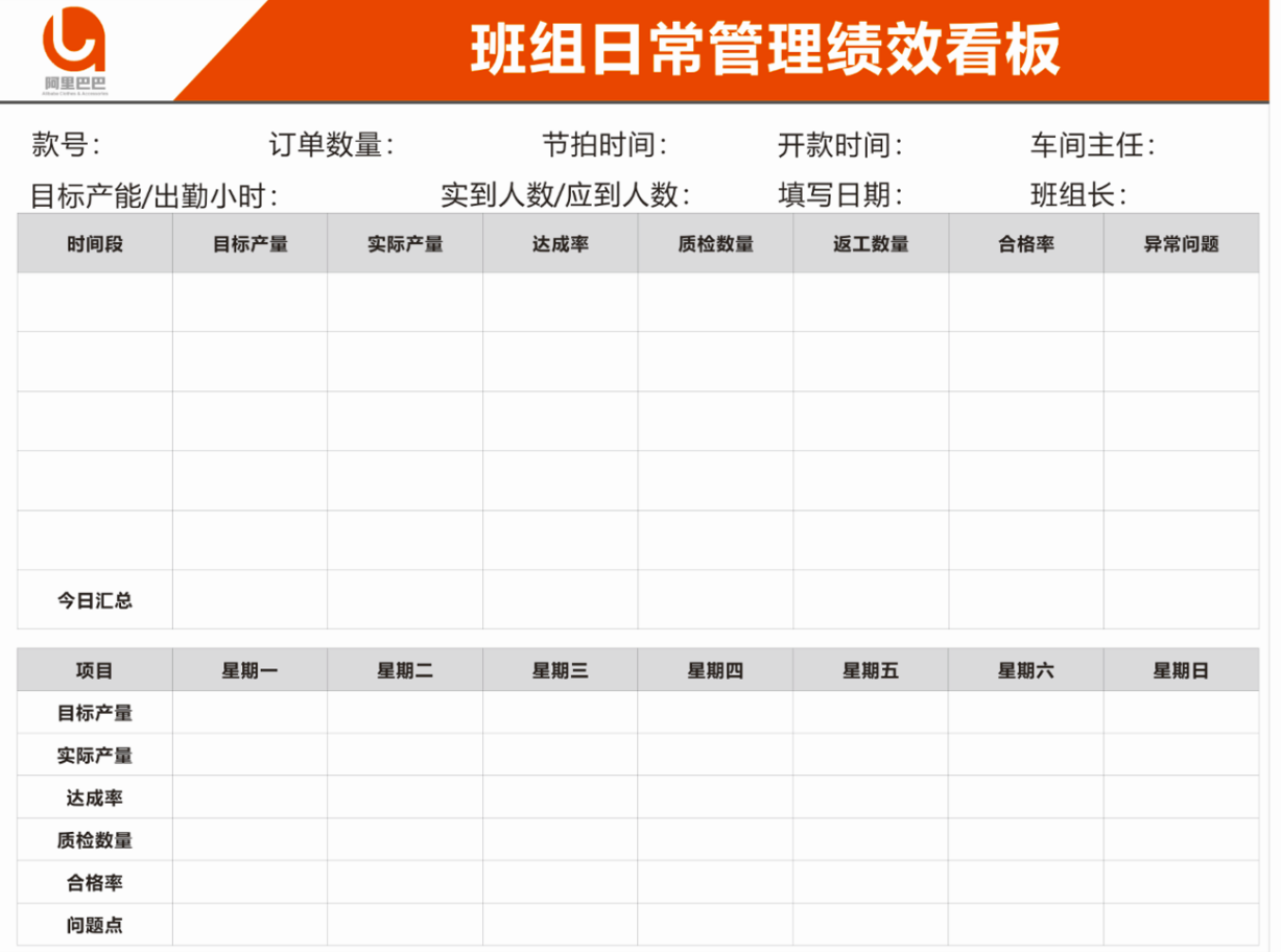 在每天下班时,班组长要总结今天的实际人均时产,实际人均时能就是每个人每小时的产能数量,通过实际人均时产与目标人均时产之间的比较,就可以看出差异,这些差异点是需要班组长去解决的地方,这也是可视化的核心,可视化是改善的起点。