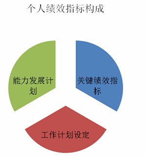 这样该企业每位员工的绩效指标由三类指标构成:关键绩效指标、工作目标设定和能力发展指标。如图6-2所示。