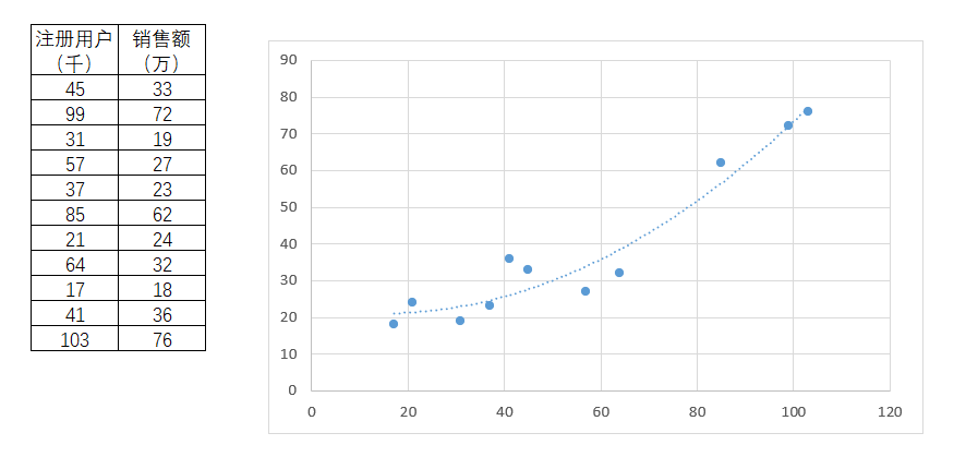 得到线性回归方程之后,只要有了下一期的用户数,那么就可以根据方程计算并预测同期的销售额。