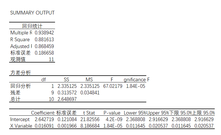 接着进行线性回归分析,得到R平方值为0.881613,比之前略有提高。